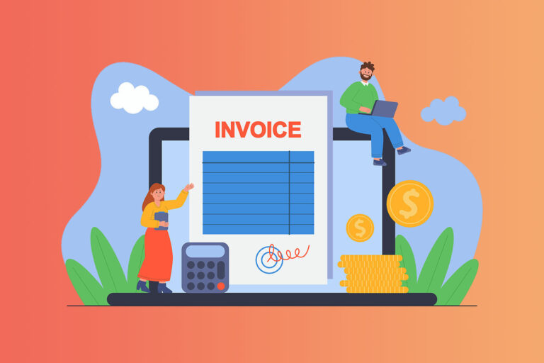Source: Freepik_Free Vector _ Tiny business people with invoice payment report and laptop Invoice financing, or factoring, is a financial...